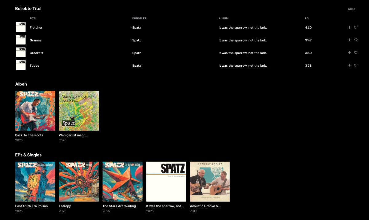 SPATZ hat letztes Jahr eine EP herausgebracht, die ich bei Tidal sofort angehört und mit einem Herz versehen habe. Auch der Band folge ich dort seitdem.