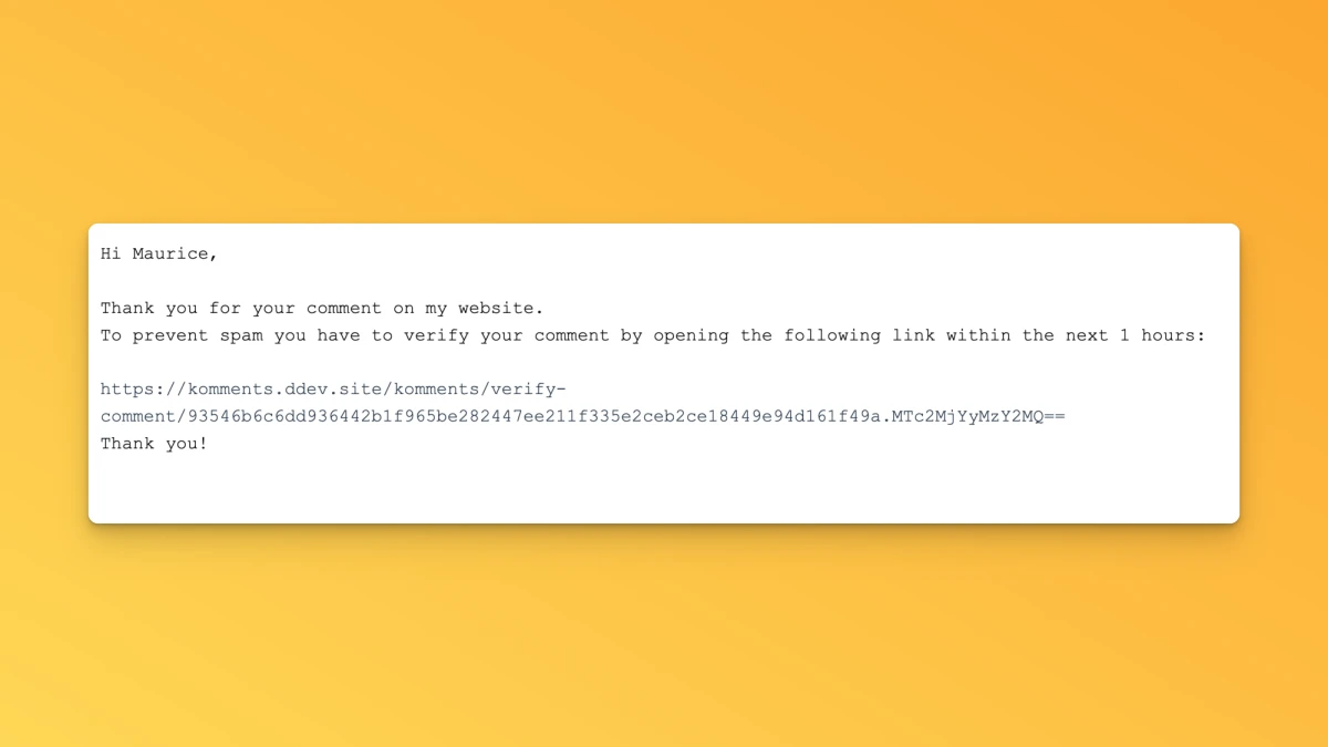 With this setup, the token will be valid for 48 hours. After that time it will be deleted, and the comment will be marked as spam.